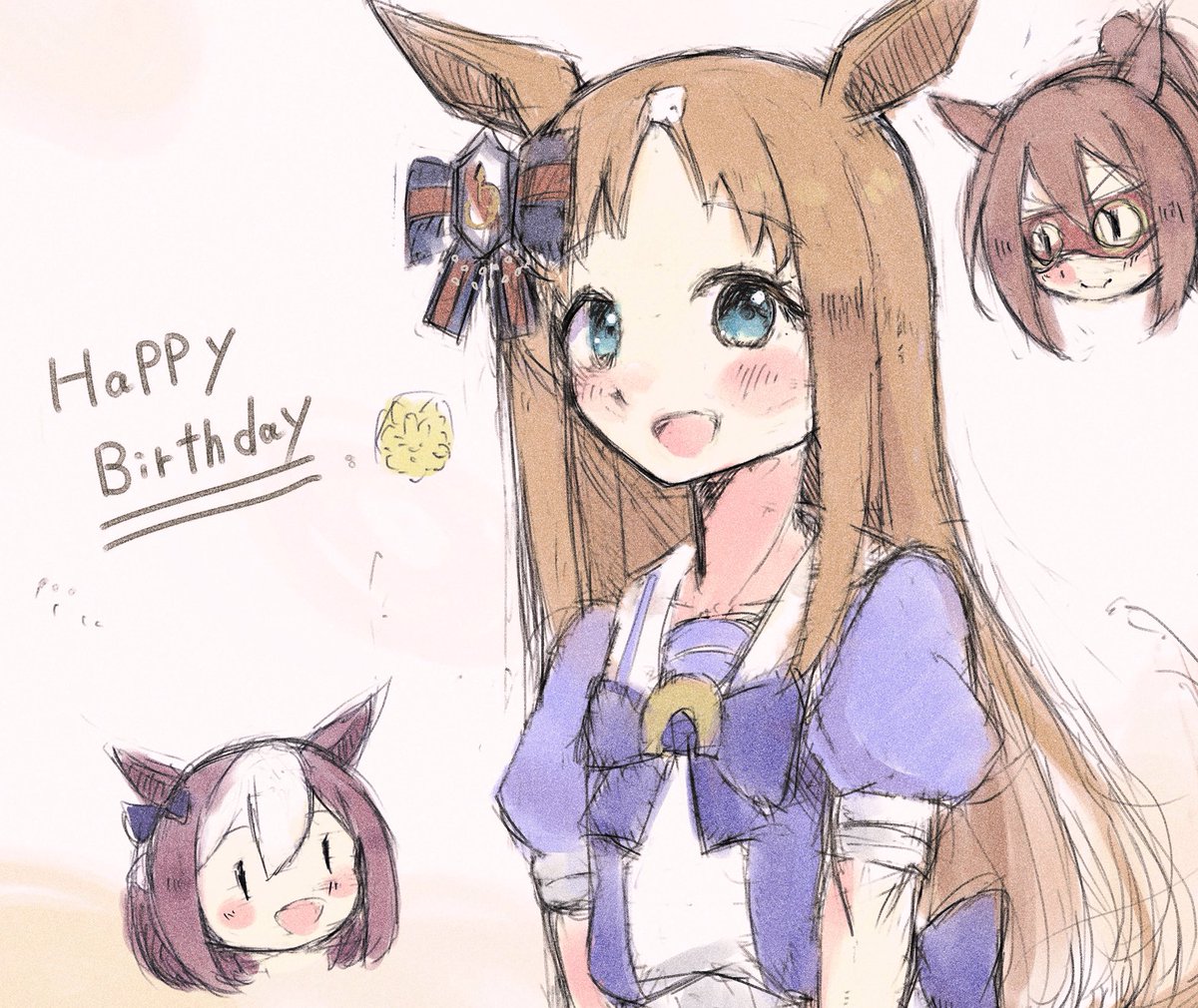 大遅刻ですがウマ娘2周年記念イラストです🎊 ズッ友うぇーい🤘( ˙꒳˙ )🤘 #ウマ娘 #ウマ娘2周年