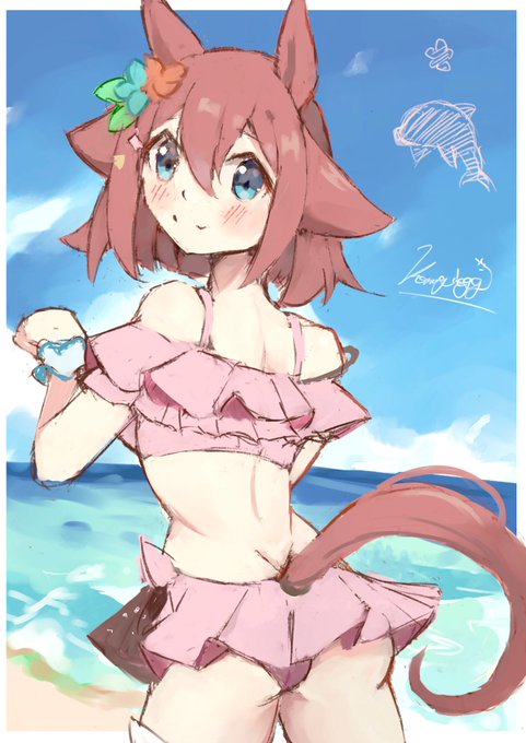 暑くなってきたので水着チヨちゃん描いたよ🌼 #サクラチヨノオー #ウマ娘