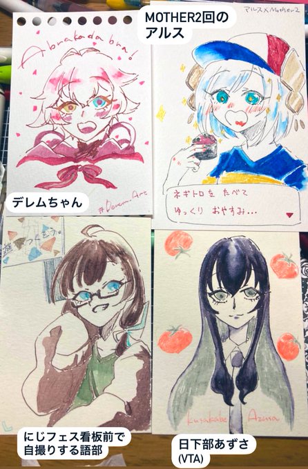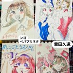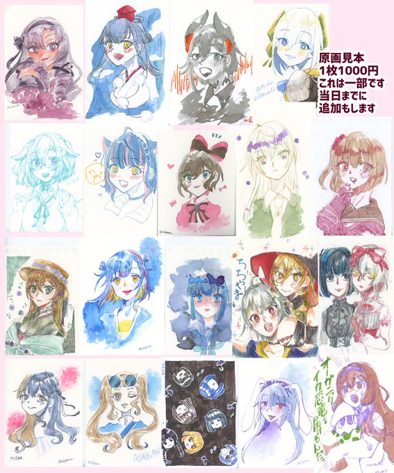 2 6 アナログ原画のサンプルになります。混雑が予想されること、取り置き等が難しいことを鑑み、原画のみ14:00~の頒布を予定しています。(抽選等は無し) 色々描きましたが原画はめちゃめちゃ枚数あるし可愛いので見るだけでもどうぞ! #にじそうさく07 23/04/27 21:18