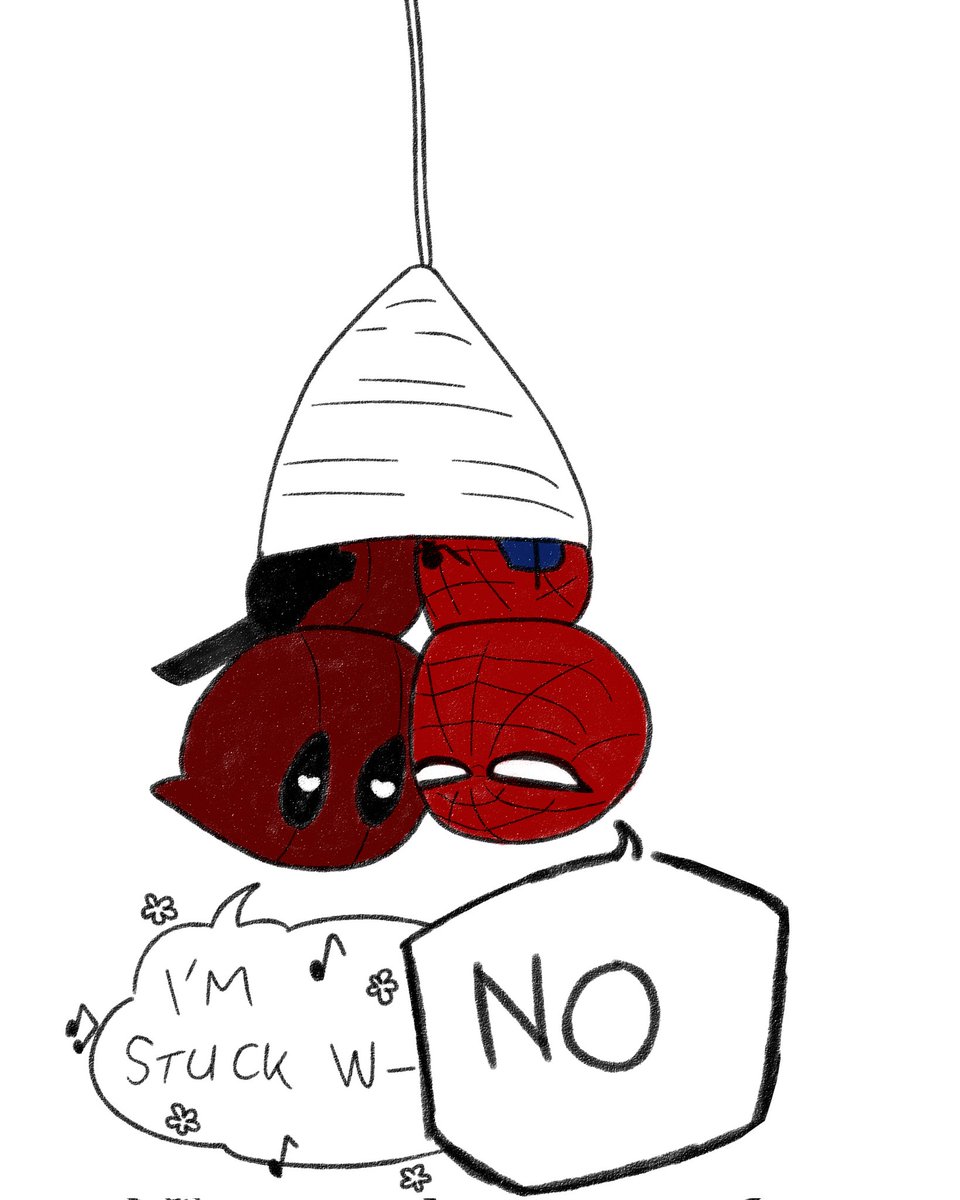 I'm stuck with you, stuck with you, stuck with you~ 🎵 #digitalart #drawing #chibiart #SpiderMan #Deadpool #FANART #spideypool #peterparker #Avengers #XMen #Marvel #artistsontwitter