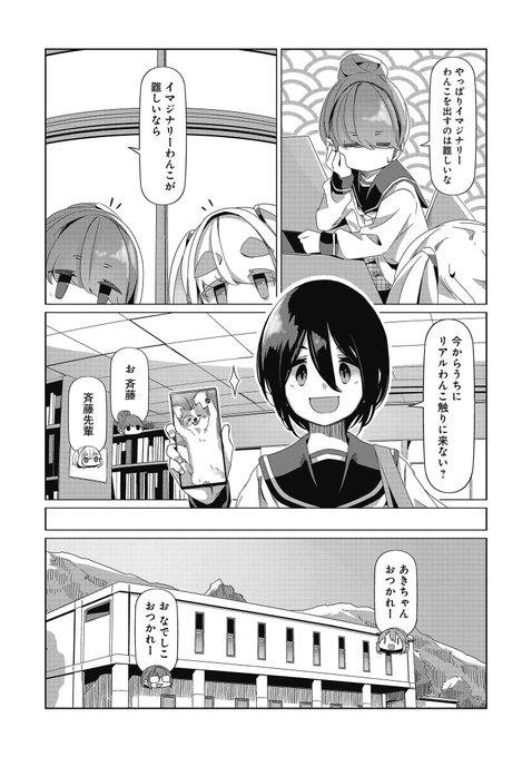 『ゆるキャン△(本編)』第87話「トンネルまであと少し」(2)本日更新です!リンと絵真は恵那の家に犬(ちくわ)に会いにいくことに…。リンは斉藤に何か頼んでいるようですが…?(担当K) ★無料最新話→comicfuz.page.link/Q4DJUC4s1nnTNy… ★作品ページ→comicfuz.page.link/bUMydYXwrRZwxh…