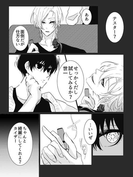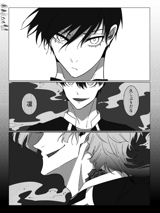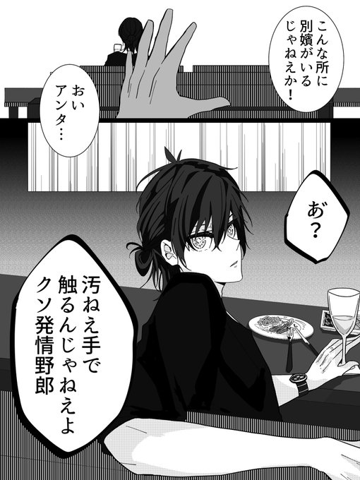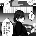 「共犯者へ告ぐ」④ 前回と続いてないです…。 rnちゃんとisgの初対面の話。 isgはrnちゃんを誰か知らずに「お前seエミュじゃん!」と無自覚煽りをしてます。サイテー!! 昔seから「rnっていう可愛い弟がいる」という話を思い出して喰い甲斐ある奴来た!と喜んでる図。 twitter.com/aftere929/stat…