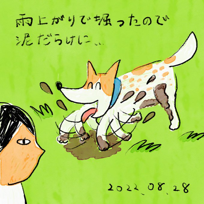 0 3 ●今日の絵日記● #100日チャレンジ 83日目 犬は好き ニンゲン苦手 22/09/15 23:05