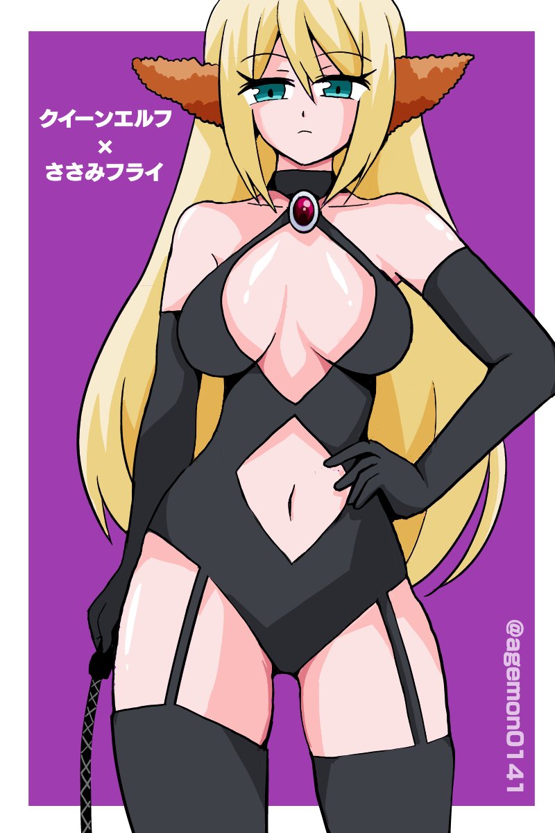 あげモン図鑑No.65 クイーンエルフ×ささみフライ 体の一部を揚げ物にされたモンスター娘 その名も「あげモン」の一種。両耳をささみフライにされてしまったエルフ族の女王様。 #オリジナルキャラクター #絵描きさんと繋がりたい #女王様 #エルフ