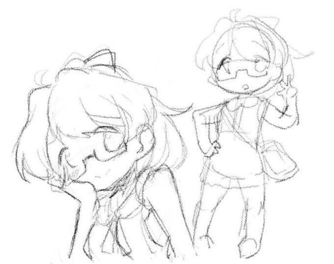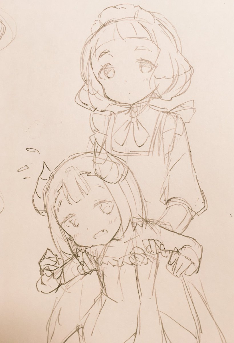 2 14 以前お題絵で描かれてたの「照れながら見ないで」のおねえちゃんが、すごく好きなので、ニュアンスをなんとか…と思いながら見ながら落書きしてた… 21/12/05 02:11