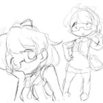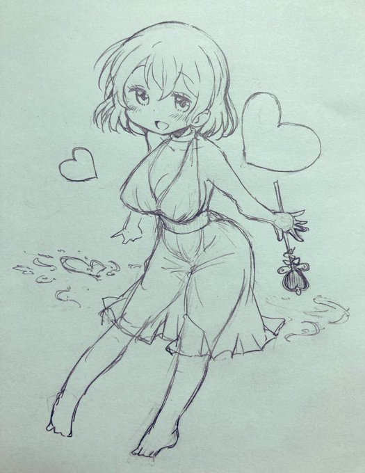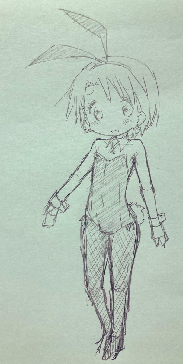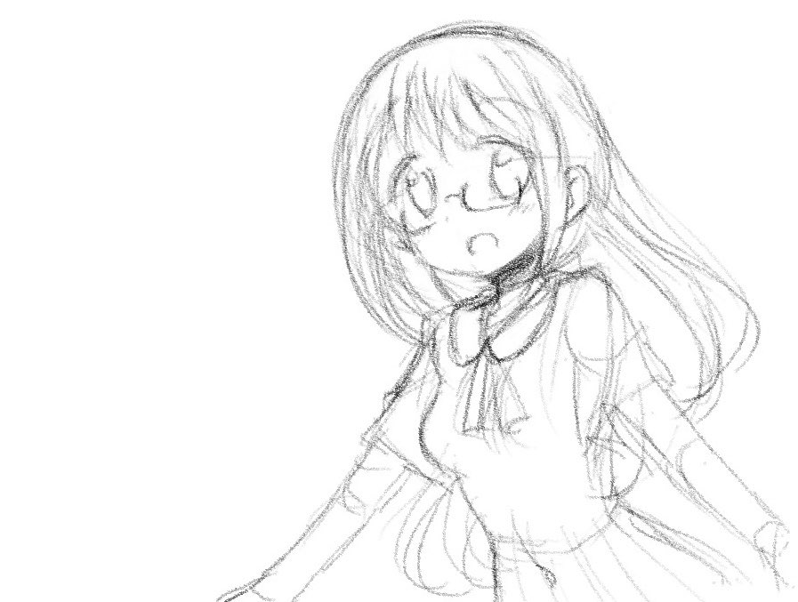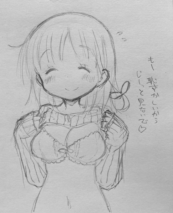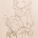 以前お題絵で描かれてたの「照れながら見ないで」のおねえちゃんが、すごく好きなので、ニュアンスをなんとか…と思いながら見ながら落書きしてた…