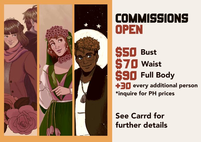 Opening up TWO slots for my commissions! If you're interested, visit the link below for further info: 🍅 tomatocomm.carrd.co RTs are appreciated! #artph #opencommissions #commissionsopen #ArtCommission #artcommissions #artistsontwitter