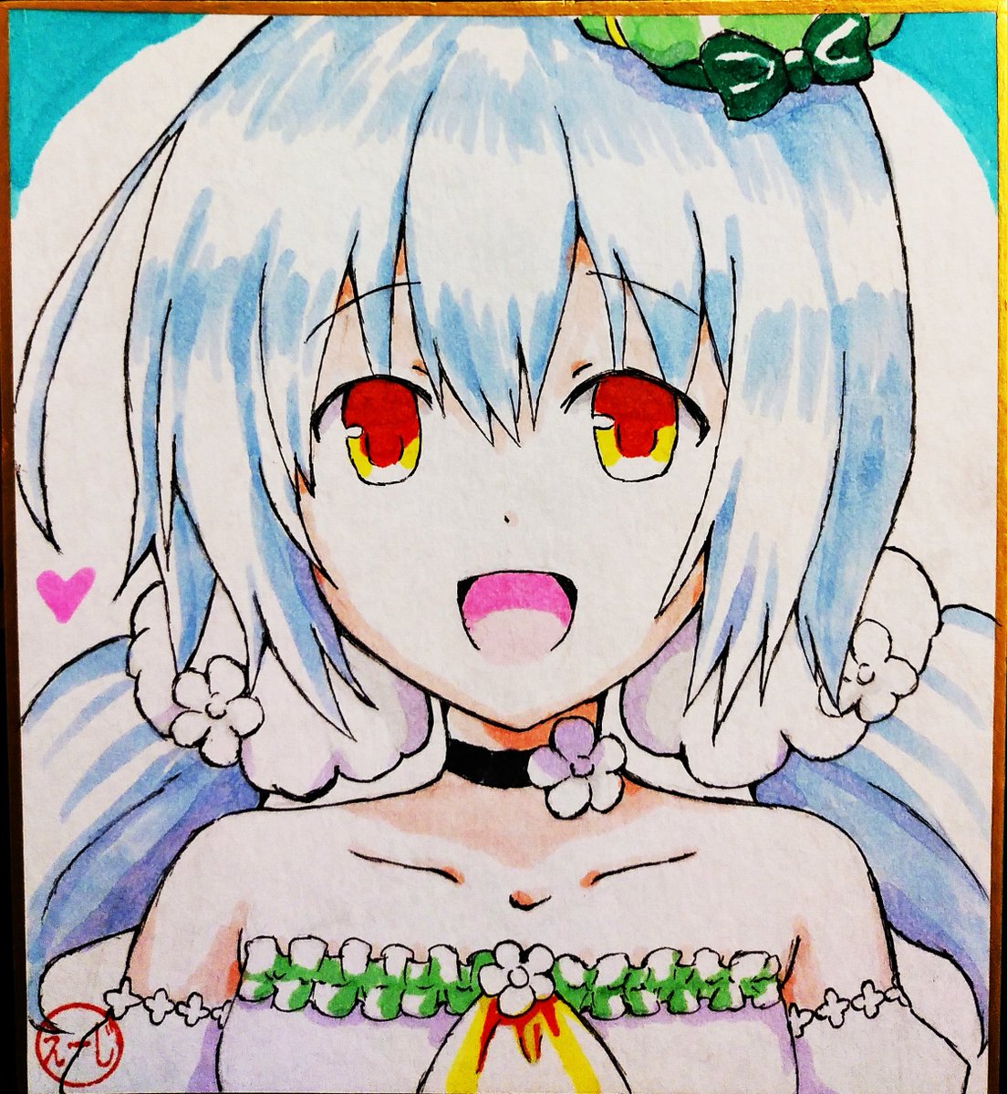 じゃぶマイで出す色紙その2。ネタ枠。シロハツユキ。 #フラワーナイトガールイラスト
