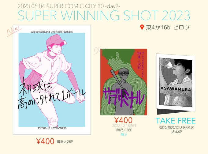5/4 スーパーウイニングショット2023新刊サンプル 御沢「初球は高めに外れて1ボール」 プロ×プロ 追いかけられてると思ってた沢が自分を追い越していっちゃった時の御の葛藤などのお話です 👇詳しくはpixiv(ページ多め) pixiv.net/artworks/10757…