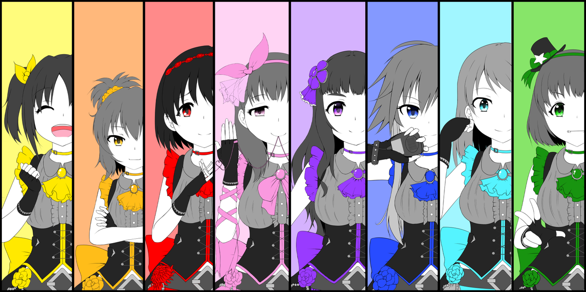 昔描いた絵を掘り起こして一人継ぎ足して順番並べ変えてこぉんな奈緒、まゆ、加蓮、巴、ほたる、加奈、忍、飛鳥の絵を描いてました