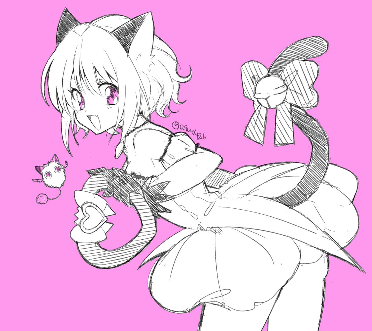 11 57 修正上げ直し〜。東京ミュウミュウのミュウイチゴちゃん描いたよ。 21/04/15 01:11