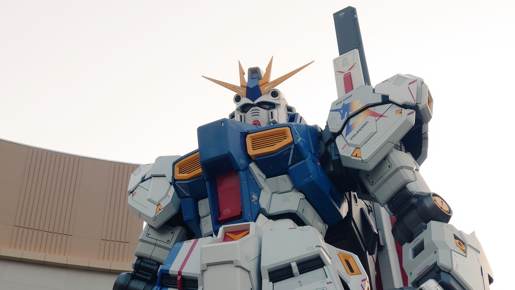 ララポートのRGνガンダムが完成したので本物とツーショット #ららぽーと福岡 #ガンプラ #νガンダム