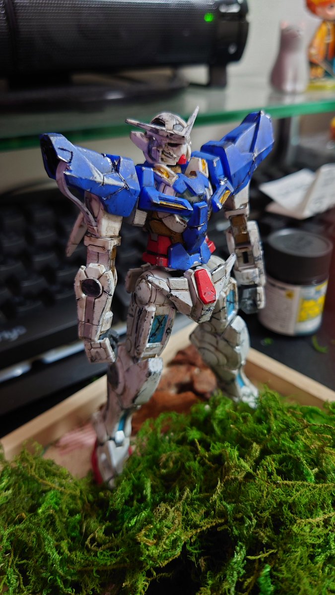 ガンダム00 HGエクシア ダメージ加工に挑戦! ニッパーで切ったり引っ掻いてバリを出したら墨入れして表面を銀の油性ペンでなぞるだけ😆 簡単に戦闘痕が出てカッコ良さ🆙 #ガンプラ #ガンプラの画像貼るとRTされると聞いて
