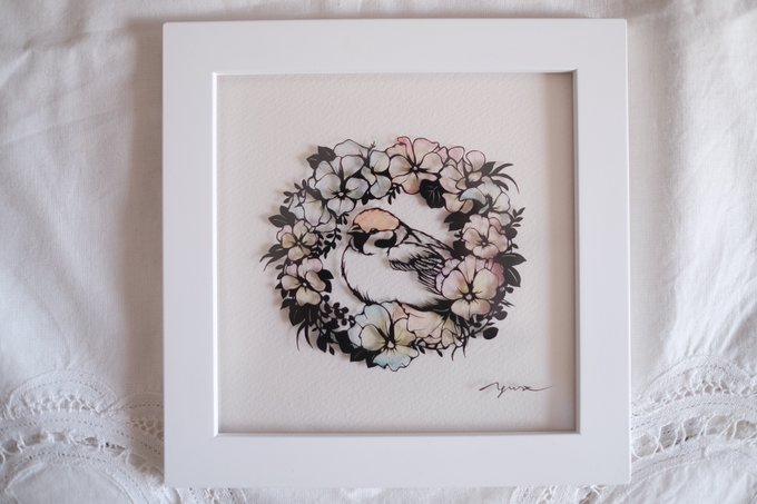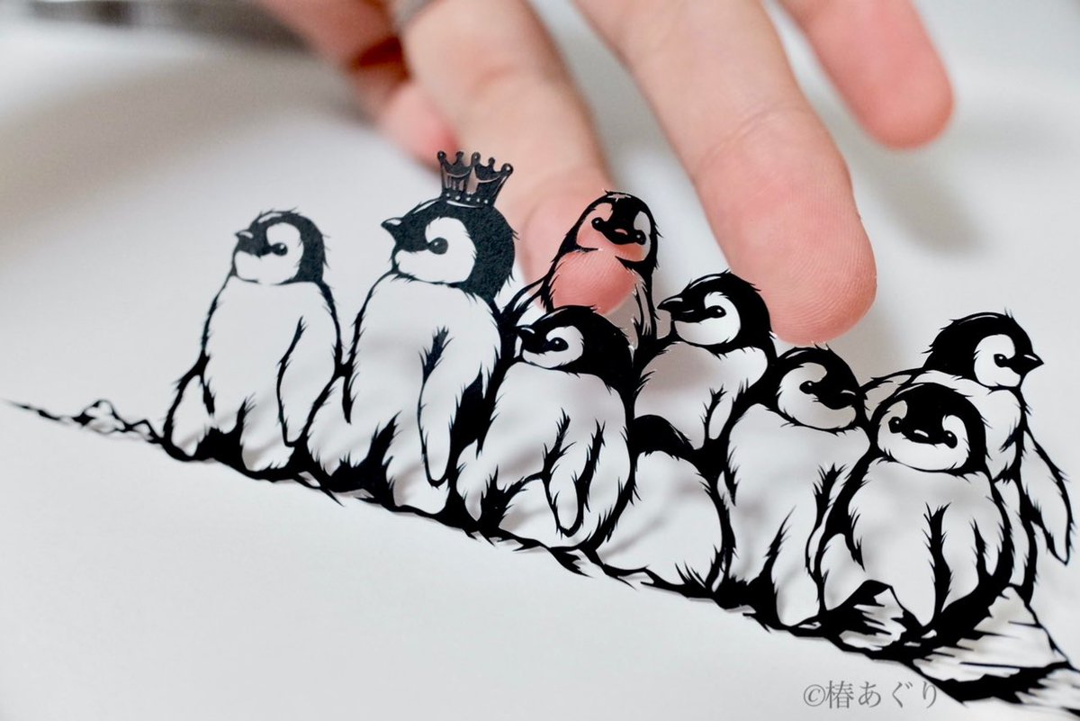 #アナログ絵で魅せてみよ #切り絵 新作のチュンちゃんです🙆♀️✨ 下絵を描いて、一枚の紙からカッターで切り抜いて作品を仕上げます🐥 twitter.com/i/web/status/1…