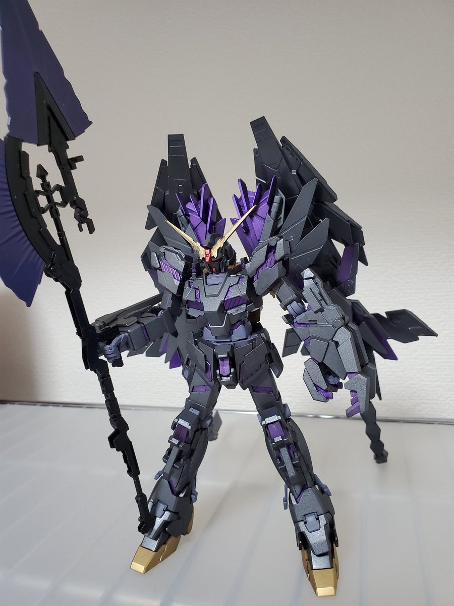 ユニコーンガンダム ペルフェクティビリティ完成!テーマは(Dark)バンシィよりもっと闇堕ちにしたくてサイコフレームはメタリックヴァイオレットを外装はメタリックブラックで塗装しました! #ガンプラ #ガンプラはどんな自由な発想で作ってもいいんだ #ガンプラの画像を貼るとRTされると聞いて