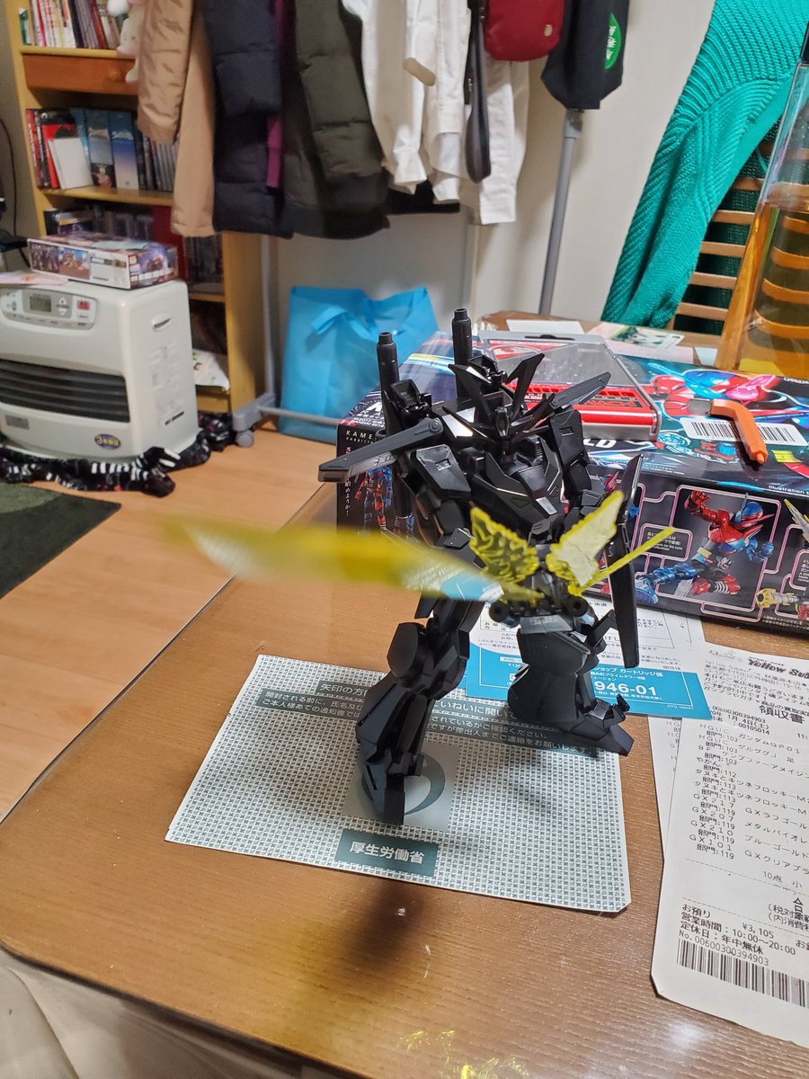 #自粛GWなのでプラモ活動 我が家のアイドルが選んでくれた(笑)ガンダムドライオン3の仮組みが終了。一言言うなら、黒オンリーのプラモは写真じゃわからんよ(笑) #ガンプラ #ガンプラはどんな自由な発想で作ってもいいんだ #ガンプラの画像貼るとRTされると聞いて #ガンダム_ドライオン3