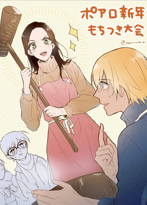 64 599 エアスケブ② おざき様 【ふるあずで新年ぽい絵】 ポの新年もちつき大会で張り切る梓とお手伝いするフリャ 描いてからこれあむあずだな?!と気づき😭すみません…… 素敵なお題ありがとうございました!🙇♂️✨ 23/01/01 03:04