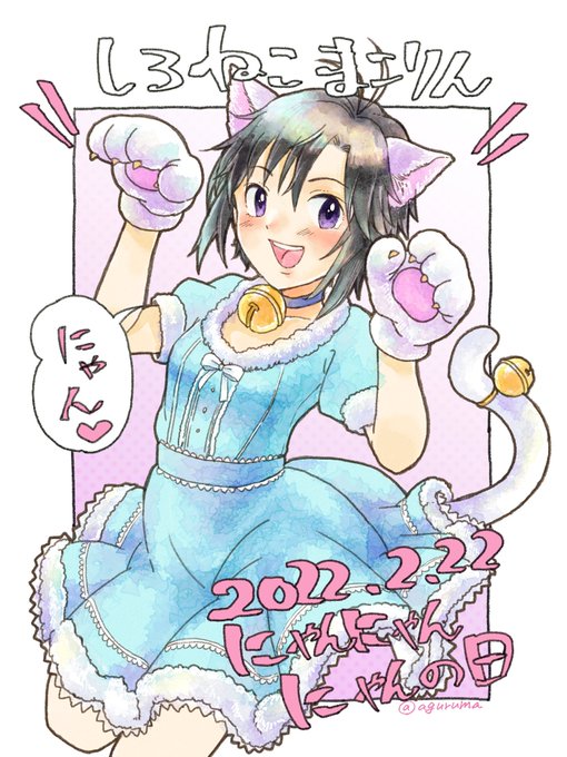 56 123 すべりこみ〜しろねこまこりん描きました〜。 #菊地真 #猫の日 22/02/22 23:58