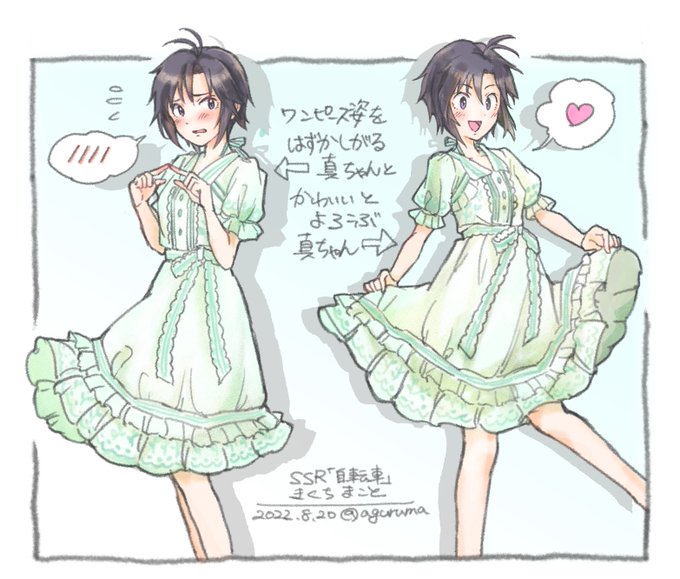 141 355 SSR自転車実装時に下書きで放置していたのを仕上げました。 ワンピ姿の真ちゃんは可愛いね。 #菊地真 22/08/20 18:25