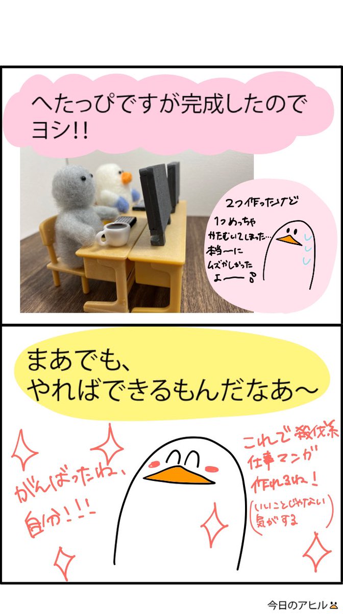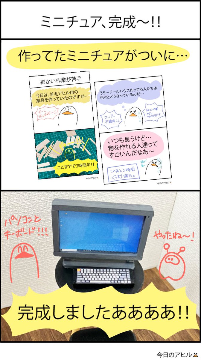 のろのろ作ってたミニチュア、ついに完成しました〜!🥳🥳🥳🎉 本当に大変だった… しかしこれで羊毛マンガも作れるぞ!やってみたらできるもんだなあ〜。頑張った!いえ〜い!!☺️✨ #漫画が読めるハッシュタグ #みんなで楽しむTwitter展覧会 #コミックエッセイ #エッセイ漫画 #sns秋の芸術祭2022