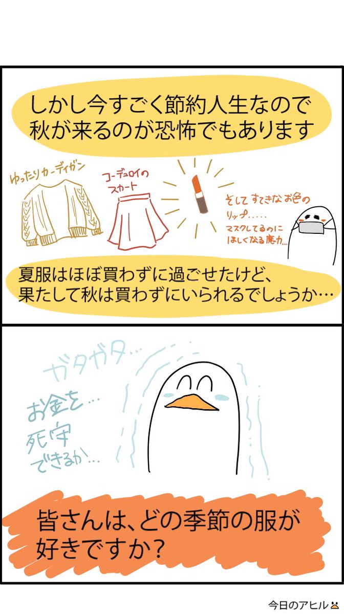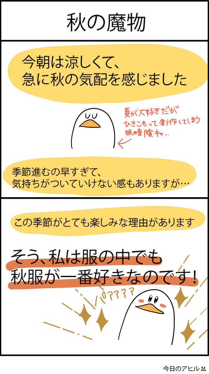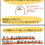 今日は、秋服が好きだー!って話🍁🍁🍁 朝も夜も涼しくて秋が近づいてきた感が…!(気が早い) #漫画が読めるハッシュタグ #みんなで楽しむTwitter展覧会 #コミックエッセイ #お絵描き #秋