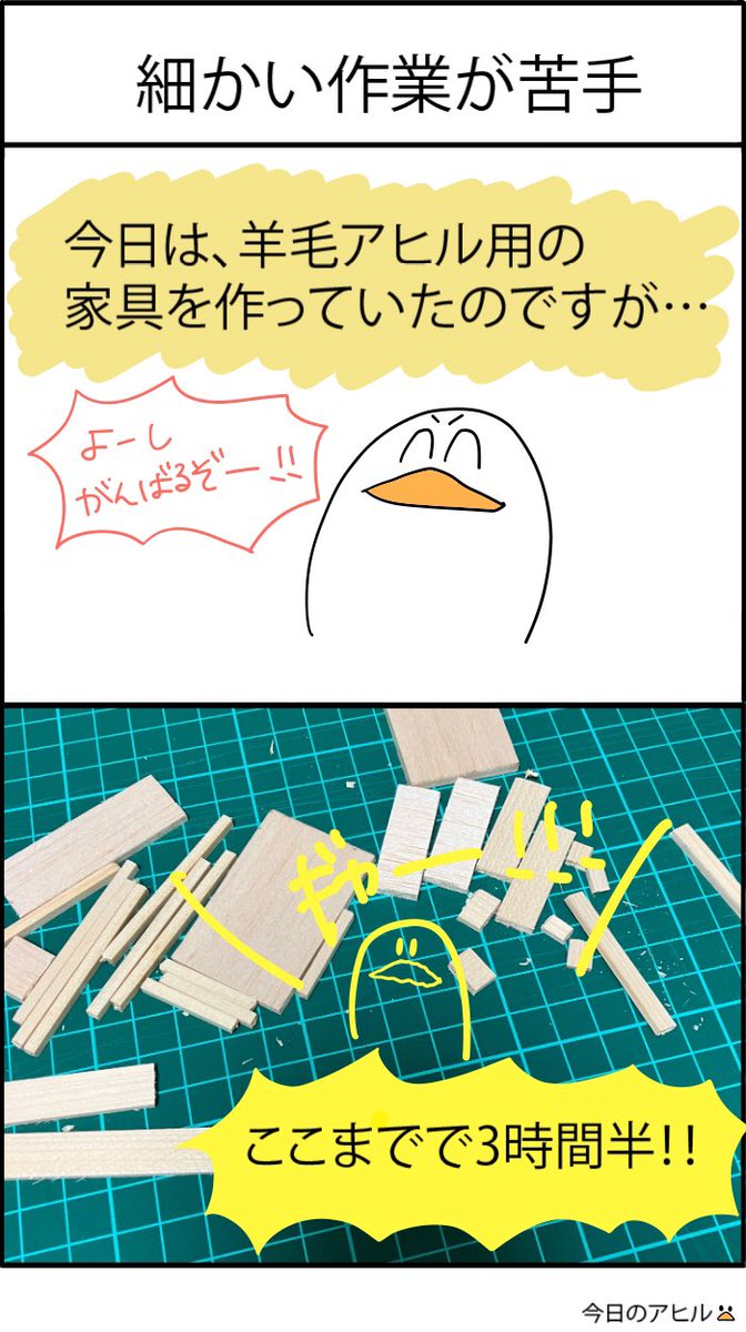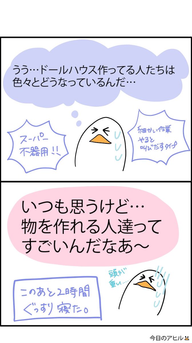 細かい作業がとっても苦手です🥺 頭から煙が出そうになったから寝たら日が暮れた😇🌇 #漫画が読めるハッシュタグ #みんなで楽しむTwitter展覧会 #コミックエッセイ #お絵描き #手芸 #ドールハウス