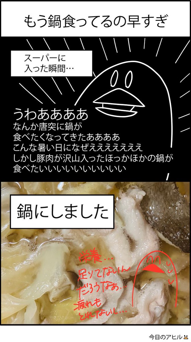 仕事後にスーパー入ったら急に豚肉の鍋が食べたくなって…もう鍋を作ってしまいました😂 疲れてるんだと思います(色々な意味で🥺) 皆さんも栄養とって! #漫画が読めるハッシュタグ #みんなで楽しむTwitter展覧会 #コミックエッセイ #エッセイ漫画