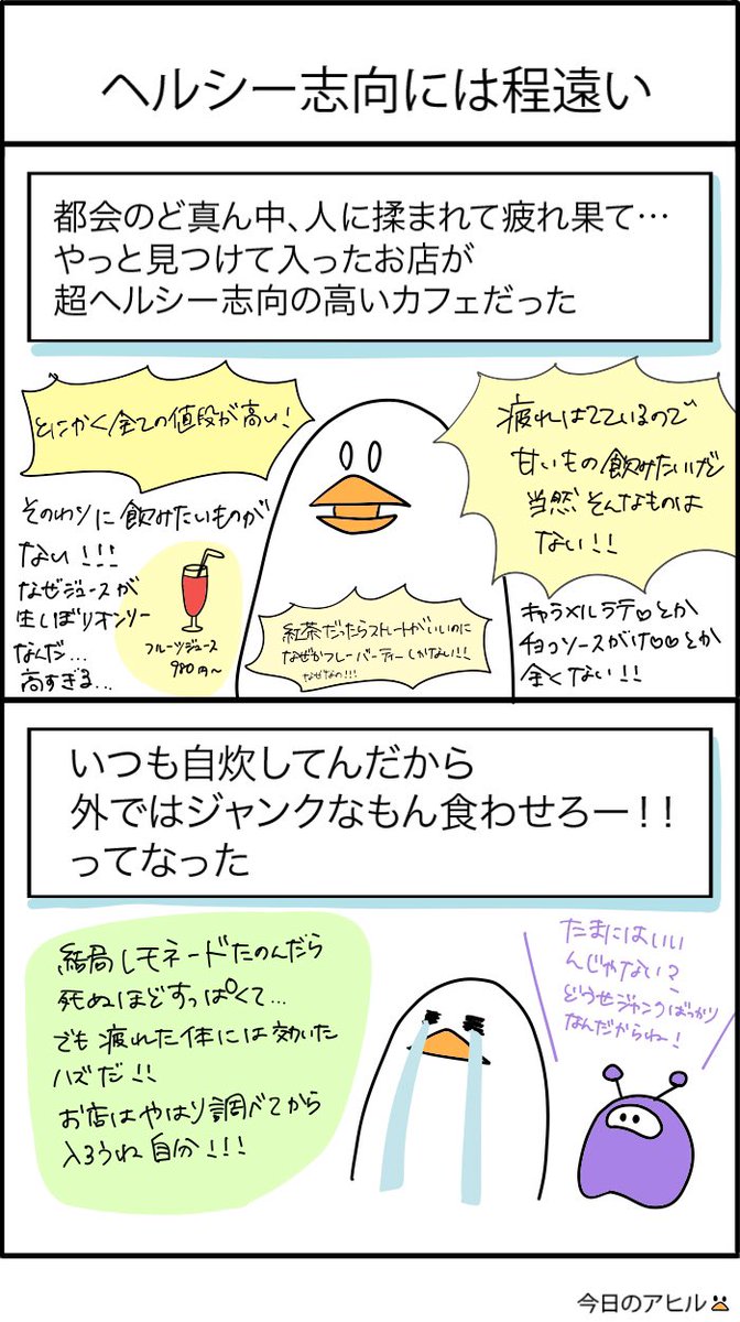 疲れ果てると「ジャンクなもの食わせろ!」ってなっちゃう😂 クリームたっぷりのラテとか大好き🥰ヘルシー志向には程遠いのでした…😂 #漫画が読めるハッシュタグ #みんなで楽しむTwitter展覧会 #コミックエッセイ #エッセイ漫画 #ゆるいイラスト #sns秋の芸術祭2022