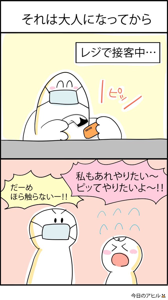レジで接客しててチラッと思うこと🥺 少女よ、色々なことをしてくれ…キミは私のようになっちゃいけないよ…🥺✨ #漫画が読めるハッシュタグ #みんなで楽しむTwitter展覧会 #コミックエッセイ #エッセイ漫画 #ゆるいイラスト #sns秋の芸術祭2022
