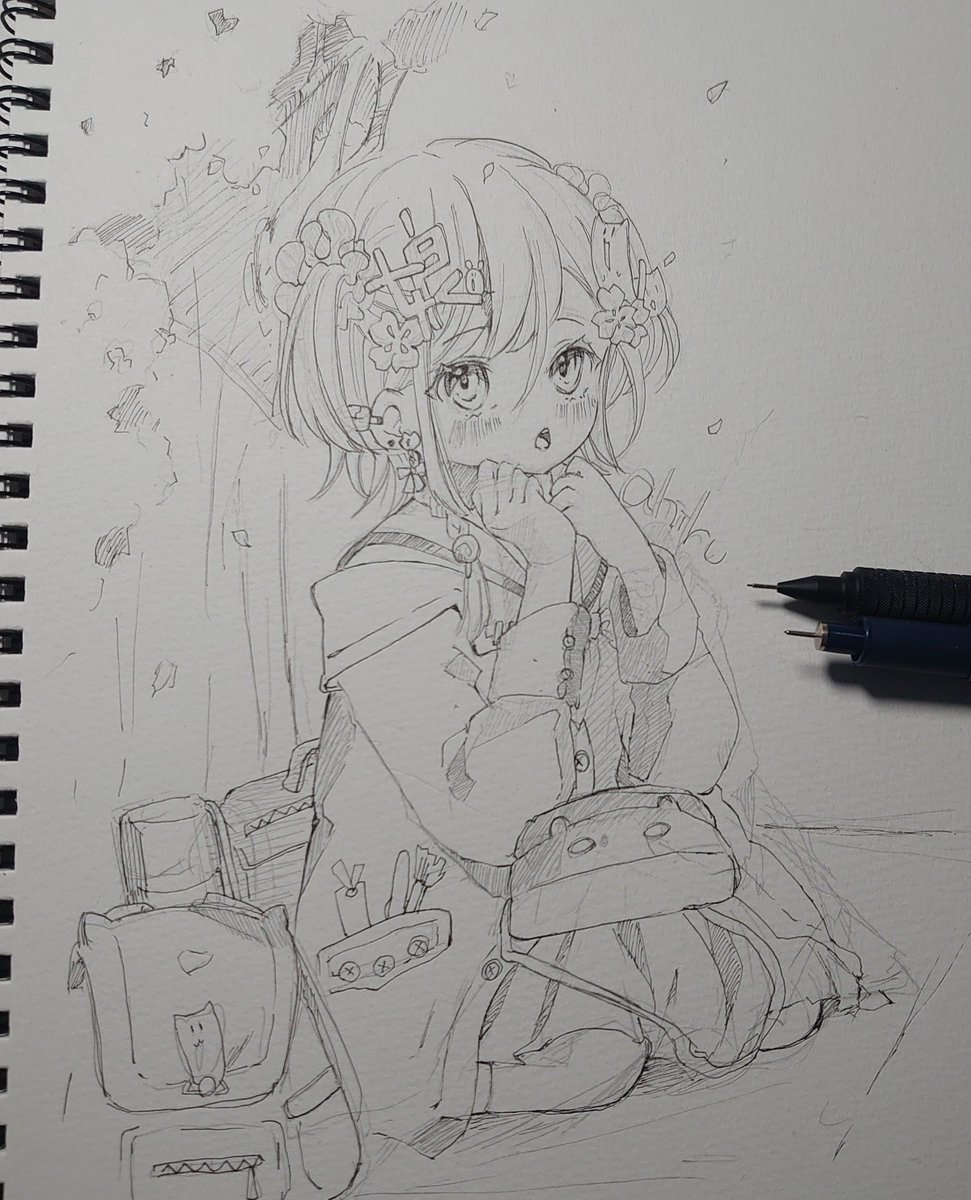 14 62 お花見で買い物組を待つ荷物番の子 #イラスト 23/04/22 16:22
