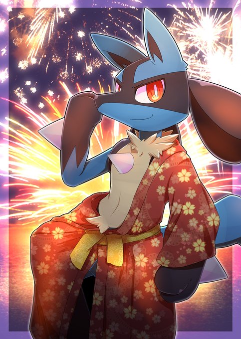 ルカリオ生誕祭と聞いて、初の予約投稿!!! 花火の時期だから花火ルカリオ!!!!! #ルカリオ生誕祭2023