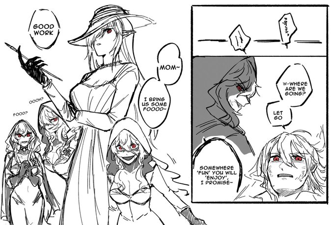 from Ulpian in a dress to Gladiia (Lady Dimitrescu) with her 3 daughters (sharks)