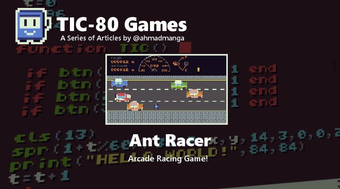 Ant Racer, a racing game on @tic_computer by @zlatovlas. Read my review on busy: busy.org/tic80games/@ah… #racing #retro #pixelart #fantasyconsoles #pico80 #tic80
