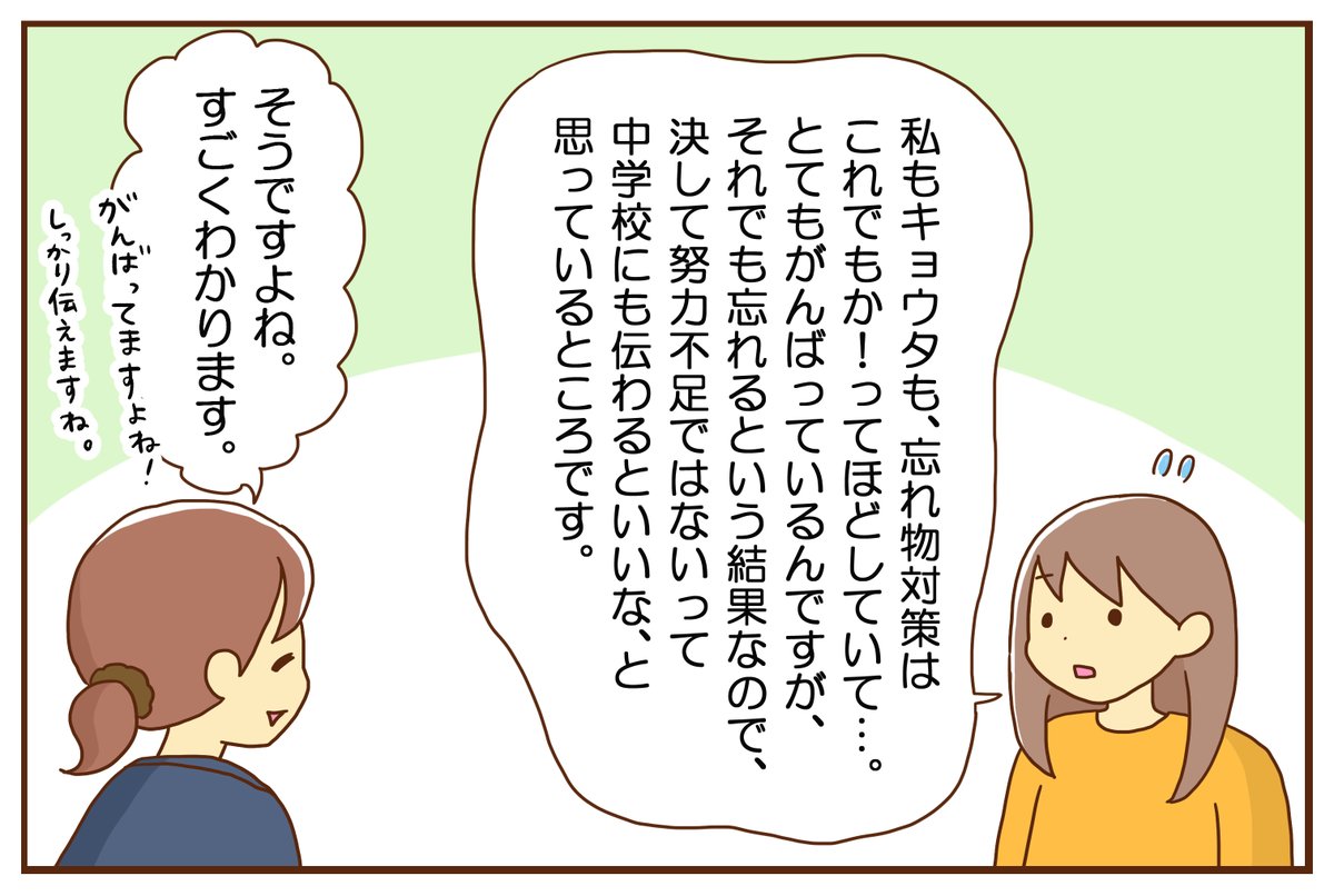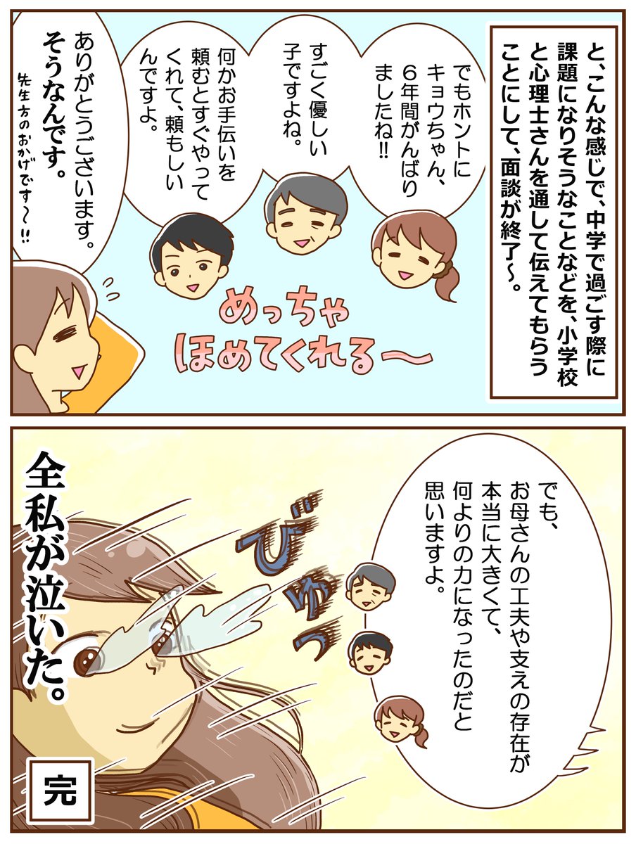 ADHD息子の中学校進学のためにやったこと(3/3) 一番がんばったのは息子だけど、私にも言葉をもらえて本当に嬉しかったです。 心配がゼロになることはないけど、中学校入学のために、今できることはやった! そんな気持ちで4月を迎えられそうです。 #ADHD #育児漫画 #漫画が読めるハッシュタグ