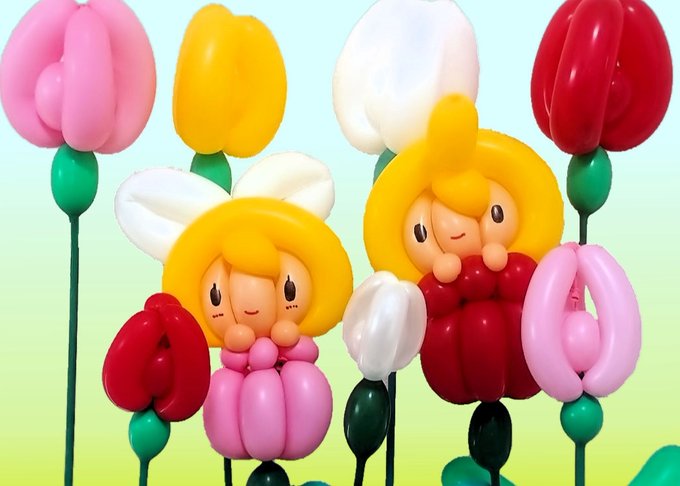 5 26 この子たちを連れてチューリップ園いきたい #初音ミク #鏡音リン #鏡音レン #バルーンアート 22/04/24 10:46