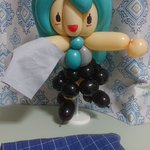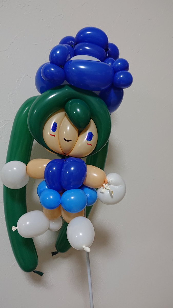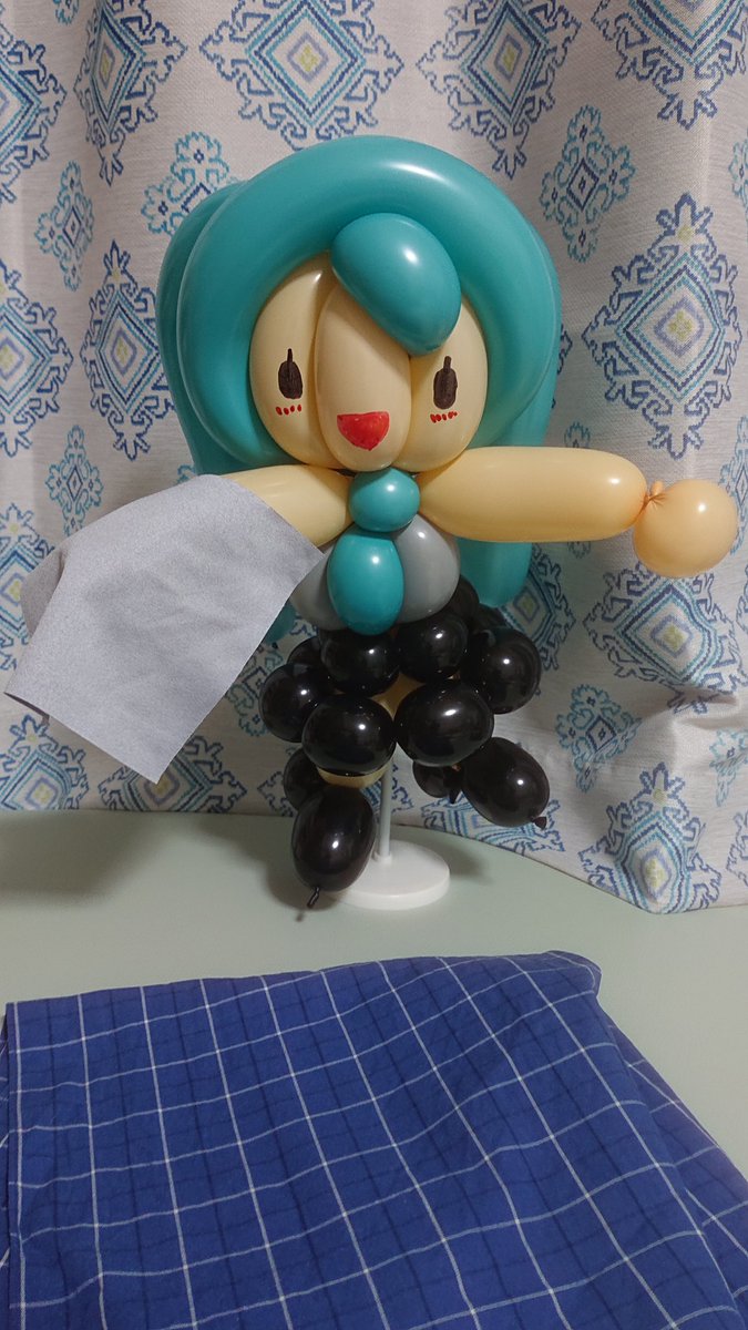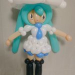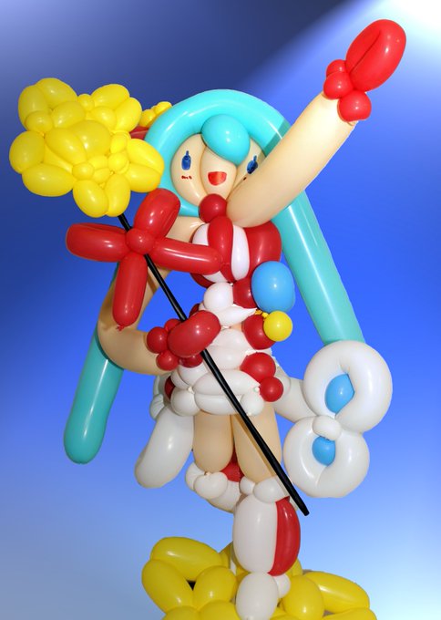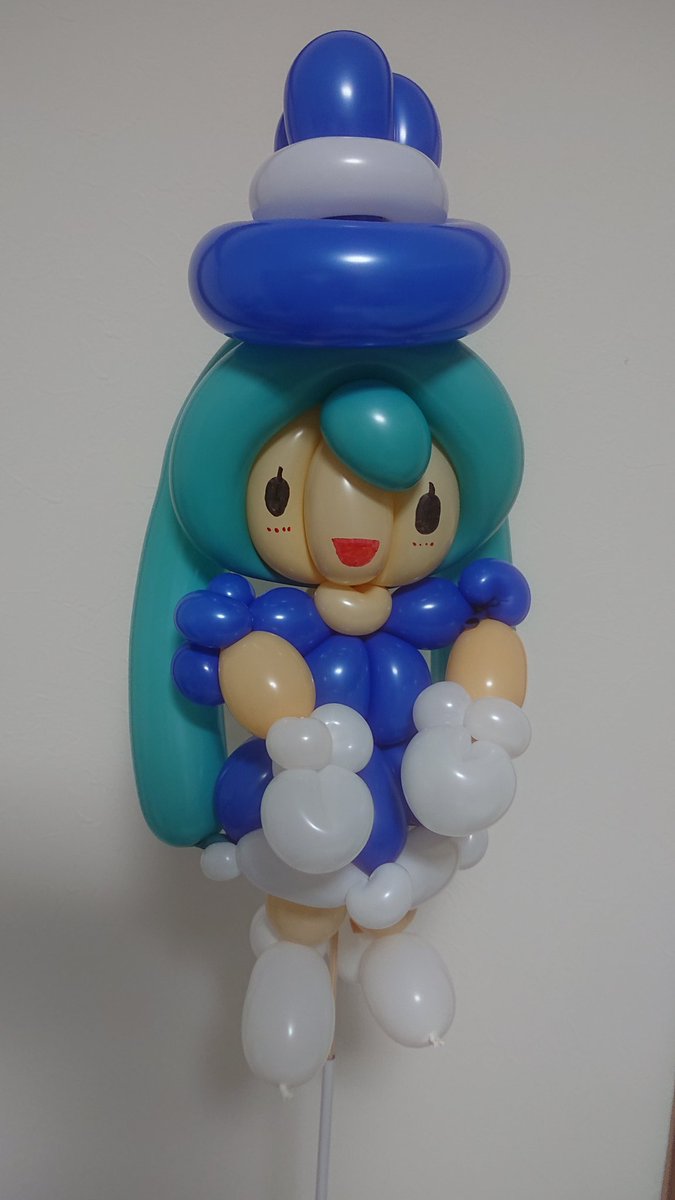 リハビリがてらにミクさん作成 夏なのでサマーメモリーちゃん作ったんだけど、見方によってはなまらちゃんにも見えるような… 明日にでもまた作ろうかなぁ #初音ミク #バルーンアート