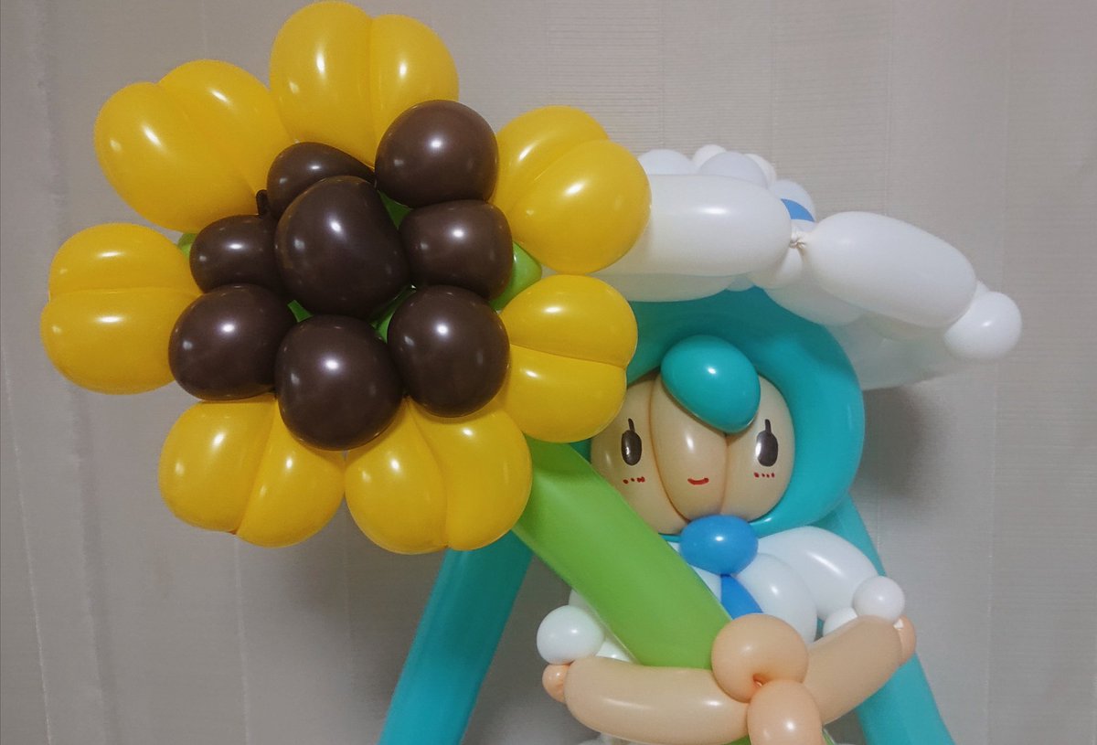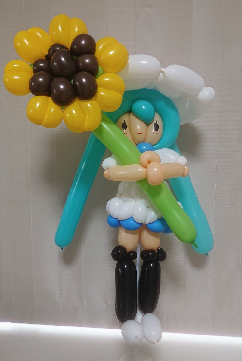 サマーメモリーミクさんにひまわり持たせてみた これだけでも夏っぽくなったかなぁ #初音ミク #バルーンアート