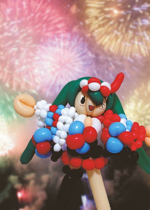 0 8 サマーメモリーミクさんにひまわり持たせてみた これだけでも夏っぽくなったかなぁ #初音ミク #バルーンアート 22/07/28 17:44