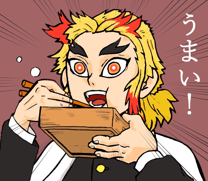 夜食は うまい!うまい! #鬼滅の刃 #煉獄杏寿郎 #イラスト