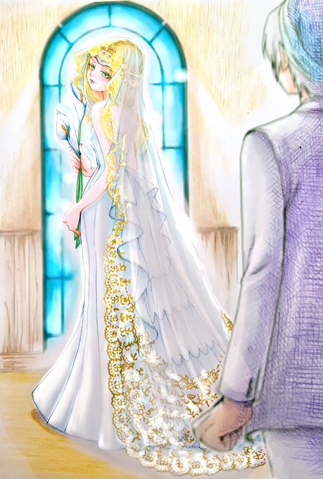 #ドラクエジューンブライド2023 #ハッピーテリミレウェディング ウォークで6イベ中なので、6キャラから💍 ミレーユにはマーメイド、マリアベールを着てもらいました
