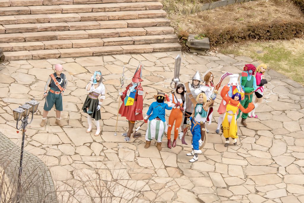 #レイヤーさんはコスプレの時のオフショットを晒して下さい シュタイン博士とだべるメデューサ 手伝うふりしてアルティミシアに抱きつくジタン 遠巻きにリッパーを盗撮するエマ シズさんのフィギュアを狙うリムル