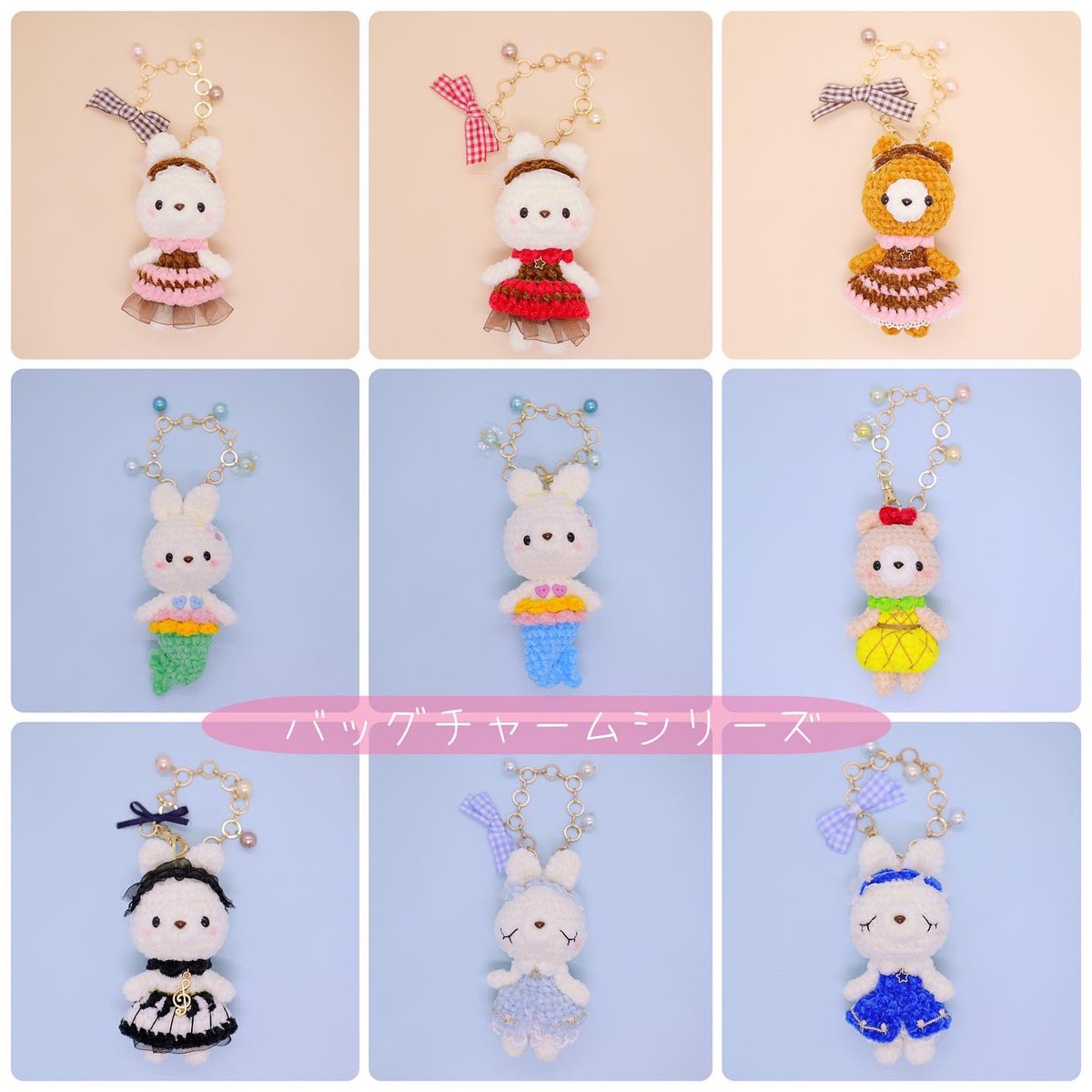 【 #ヒトガタ展2023 お品書き】 イチゴチョコは画像の11点を出品します。 ドレスの子は前回も展示してもらったのですが、昨年はコロナ禍でご来場が叶わなかった方にも見ていただけたらと思っています¨̮♡︎ #あみぐるみ #ハンドメイド作品