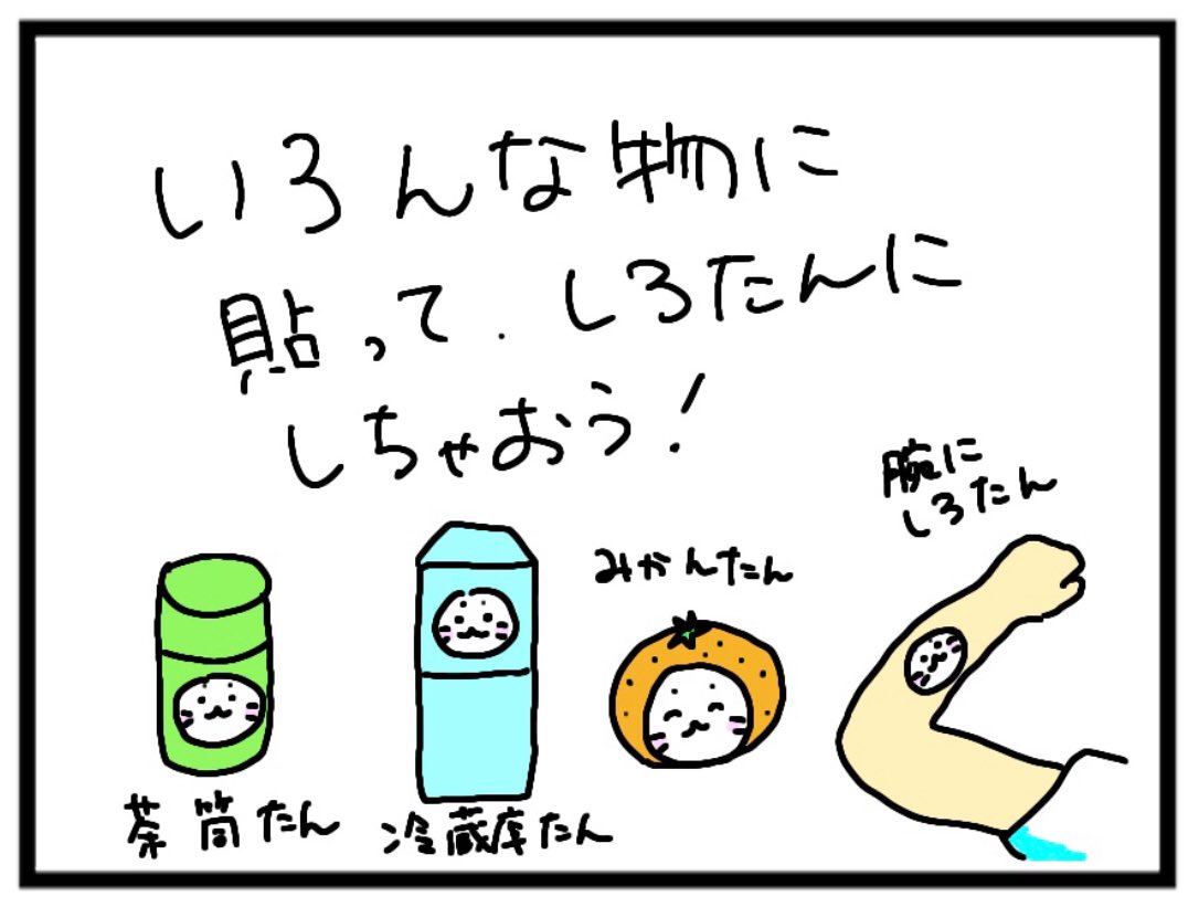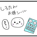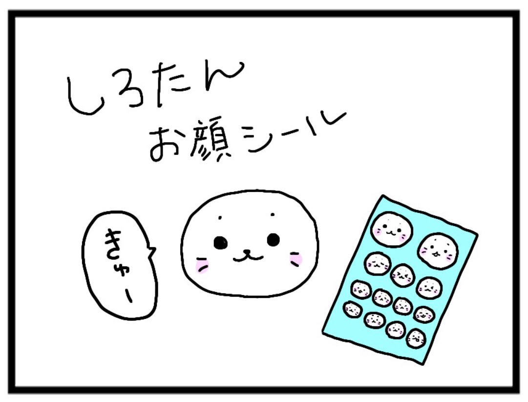 しろたんのお顔シールで いろんなものをしろたんに! ちなみにふわふわ素材でお目目も立体的なお顔シール希望 #しろたんらくがき