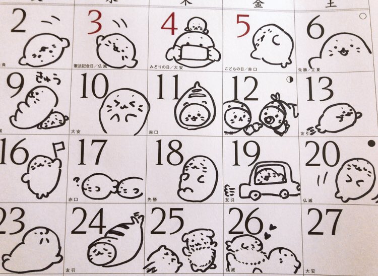 カレンダー落書き #しろたんらくがき
