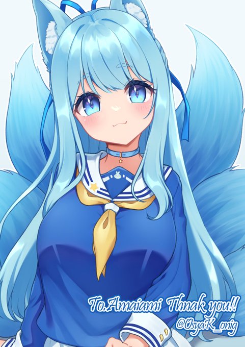"Thank you for picking this out for me! Well, how do I look?" 💙❄️ 🎨: @nyabe_pi | #Amaiillust #Vtuber