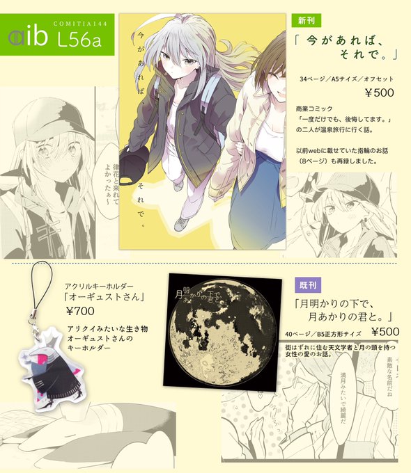 5/5(金) #COMITIA144 【L56a】お品書き 新刊あります🙋既刊とグッズも少し持っていきます よろしくお願いします! twitter.com/aib_miyy/statu…