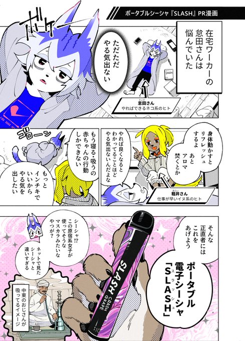 ポータブルシーシャSLASH(@VapeSlash)のPR漫画です こちらのURLから送料無料クーポンがもらえます ▶︎ letters.co.jp/invite/29YOsdr… 非喫煙者ですがおいしく吸えました🍇喉がスッキリするので作業中やゲーム中に愛用しています! #PR #slash #slash_art