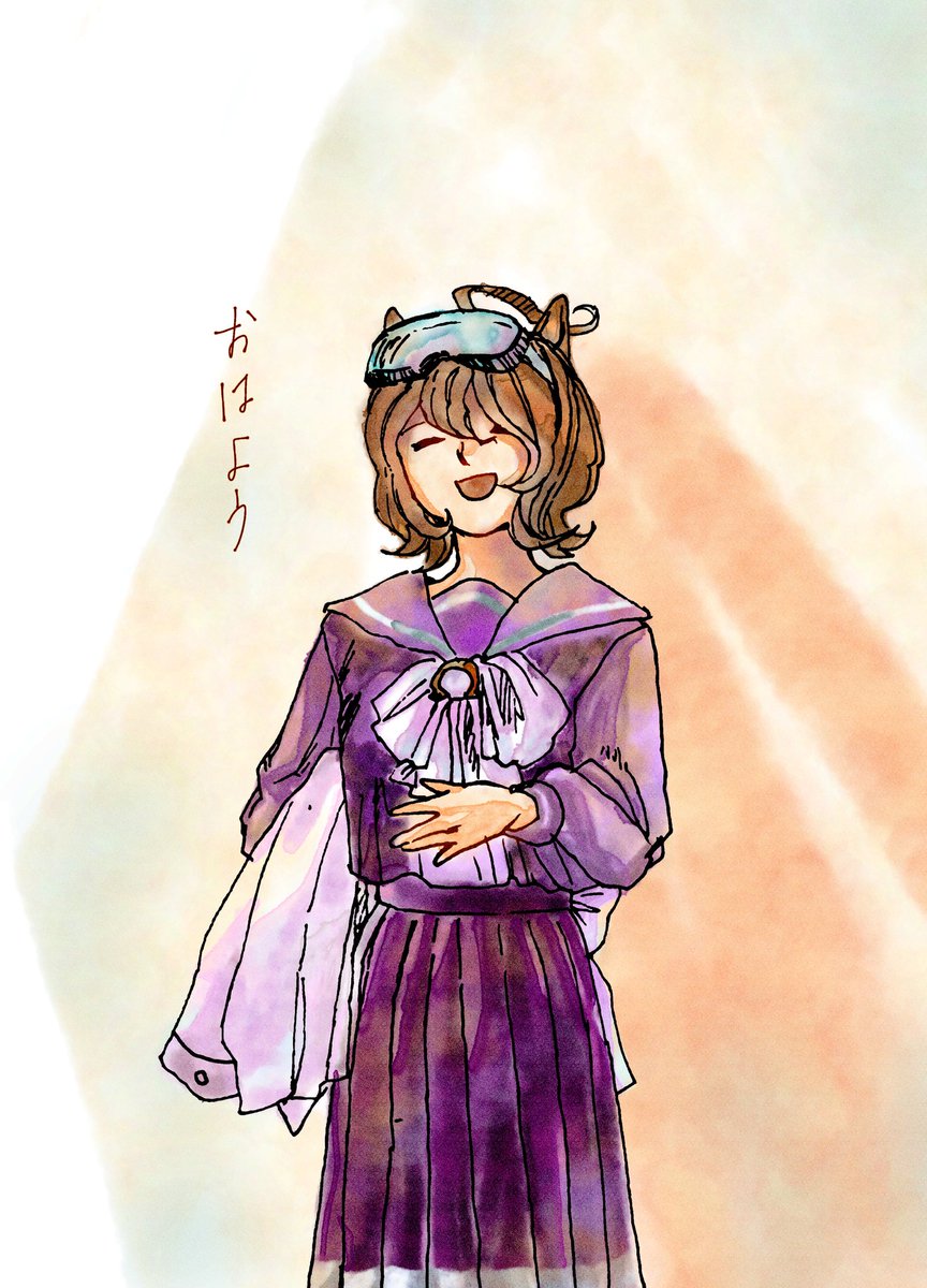 2 8 ※制服間違えてます。 朝の実験帰りのタキオン #ウマ娘 #アグネスタキオン #水彩 21/12/05 01:56