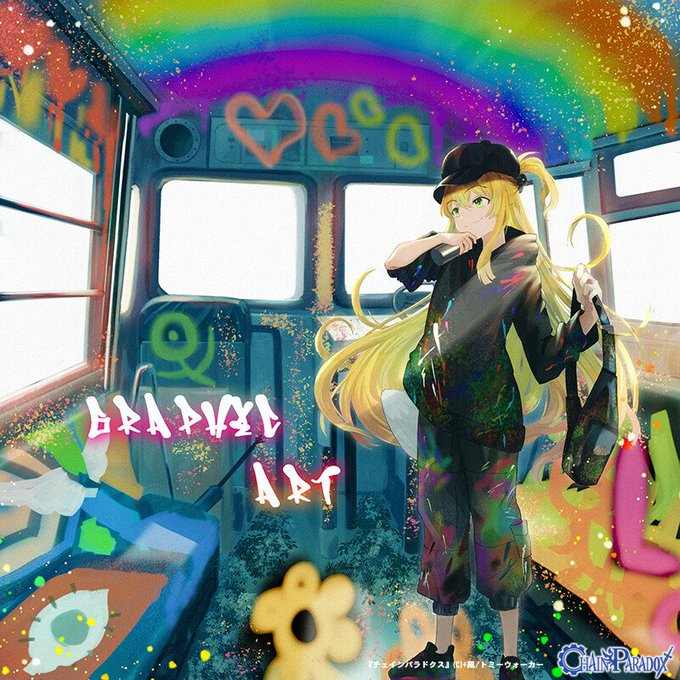 遅くなってすみません!ご依頼ありがとうございます! この子ならどんなアートを描くんだろうって考えた時にきっと外だけでなく内側から人を明るくしていくような子なんだろうと思ったので敢えて内側に描いている様子を描きました。スプレーアート奥深いです #チェインパラドクス #仕事絵