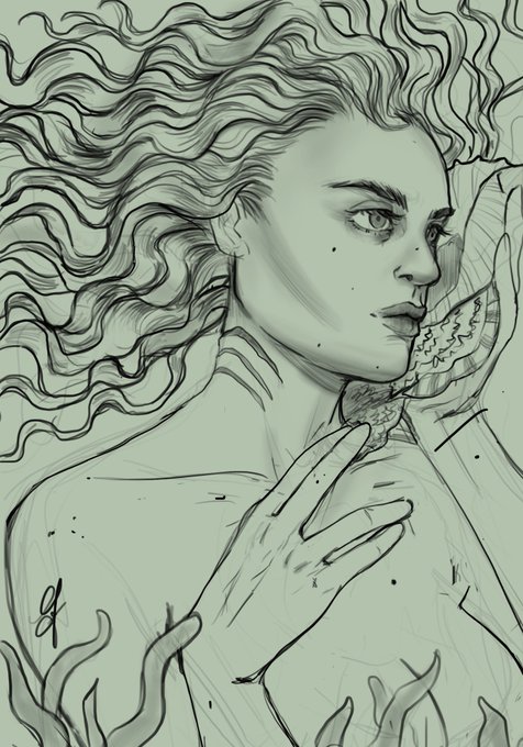 Ella le da su largo pelo como una muestra de amor. Él la ama pero siendo Hija del Mar y él Hijo de los Humanos, están condenados a morir si están juntos, ella se convertirá en espuma si sale del océano y él será arrastrado a las profundidades #mermay #mermaid #mermay2023
